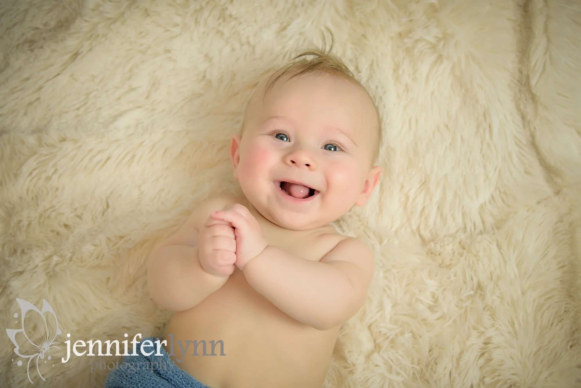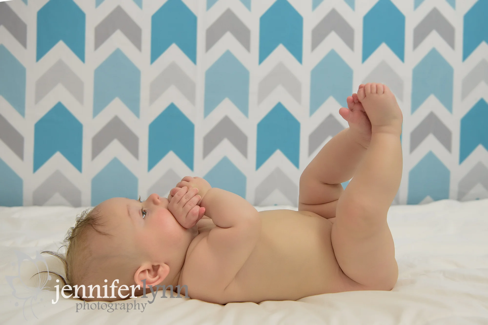 Ari is just 4 months now, and I've had the privilege of meeting his family for his mom's maternity session, his newborn session, and now as he starts to roll over and find his toes. Next time he will be sitting and maybe even standing by the time I get to take portraits at his 12 month session! His mom wanted to feature Ari in his birthday suit, and we had fun watching him roll around and talk to us as he found his hands, fingers, and toes. I was sure to get some close up of just his baby features like his adorable hair, bright eyes, and Buddha belly.
