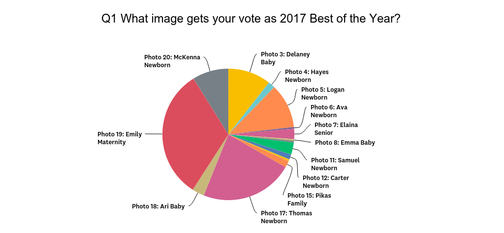 You completely blew me away with the number of "likes", shares, and survey votes. In fact you forced me to upgrade my survey package with Survey Monkey just so I could see all the results. This year had a whopping 237 voters on the survey alone and 113 Facebook likes via the official contest album. I had fun watching everything come in and reading all the wonderful comments on the blog. I so hope that even if you didn't win I'll get to see you and your beautiful families again this year for updated portraits.